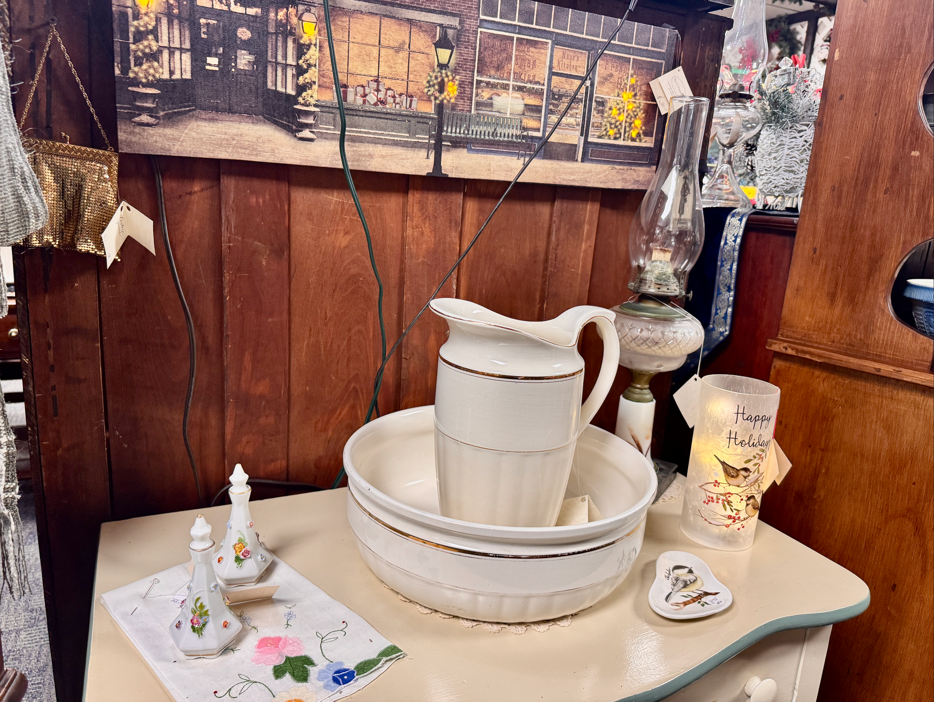 - We also have lamps and shades, hand-painted and period glass, silk florals, and an assortment of rare finds.